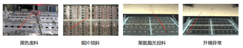 可對金屬模具黑色廢料、銅片傾斜、聚氨酯無投料、開模異常進行缺陷檢測。