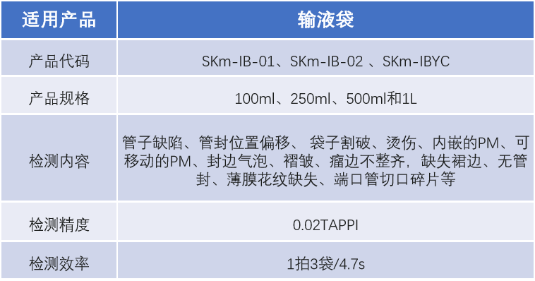 適用于醫(yī)藥行業(yè)輸液袋的全方位檢測。對管子缺陷、管封位置偏移、袋子割破、燙傷、內(nèi)嵌的PM、可移動的PM、封邊氣泡、褶皺、瘤邊不整齊,缺失裙邊、無管封、薄膜花紋缺失、端口管切口碎片等缺陷進(jìn)行檢測。